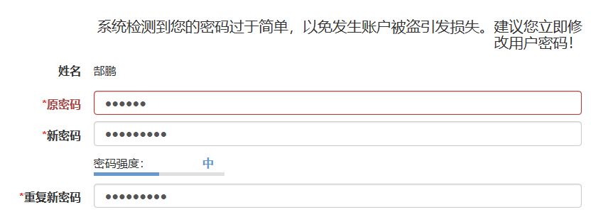 注:通过域名第一次登陆教务系统,系统会让修改密码,密码必须6-18位,数字+字母或特殊字符组成。如下图: