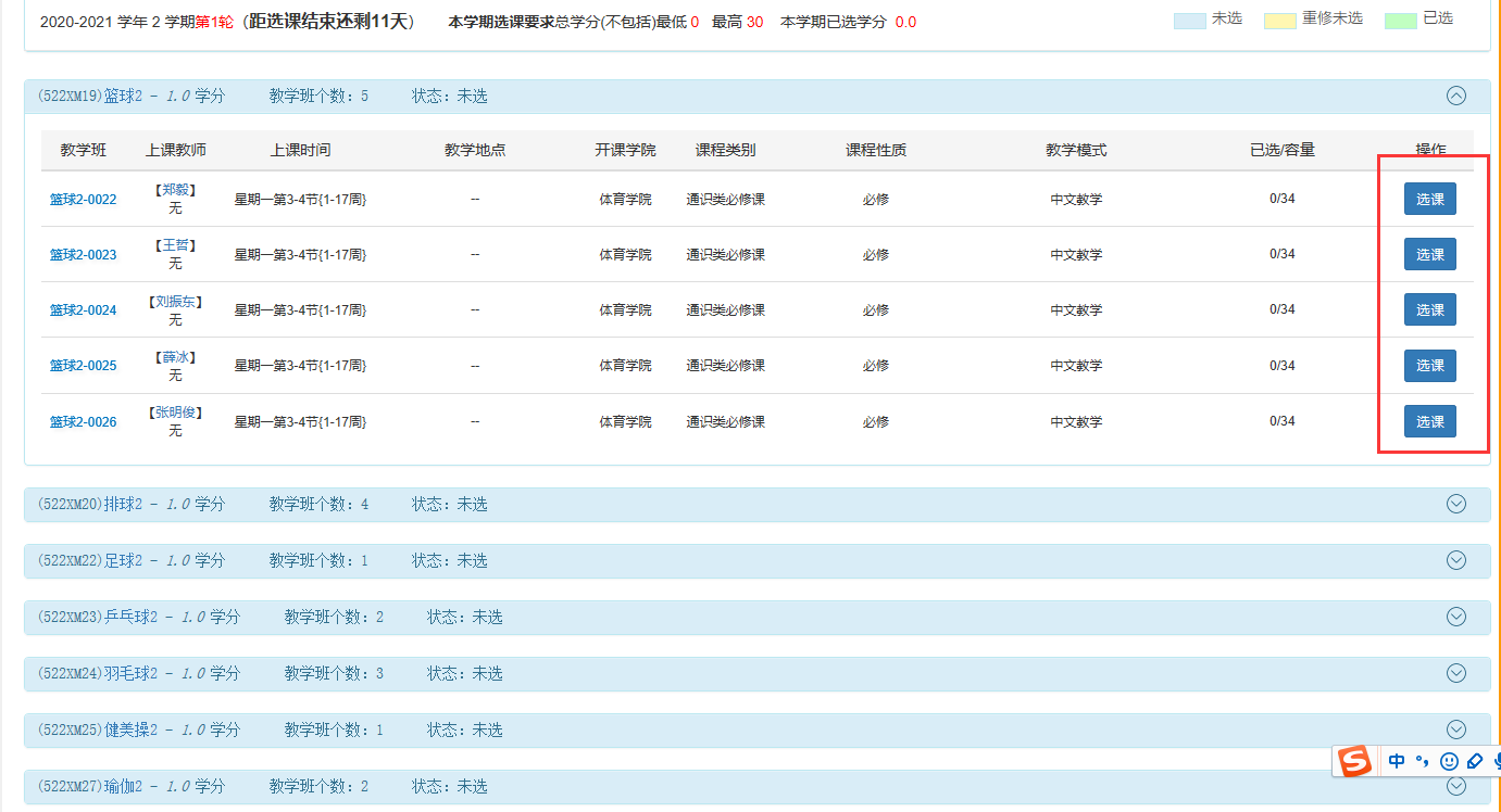 二.选课(逐步开通校公选课、体育课、大学英语、专业选修课)