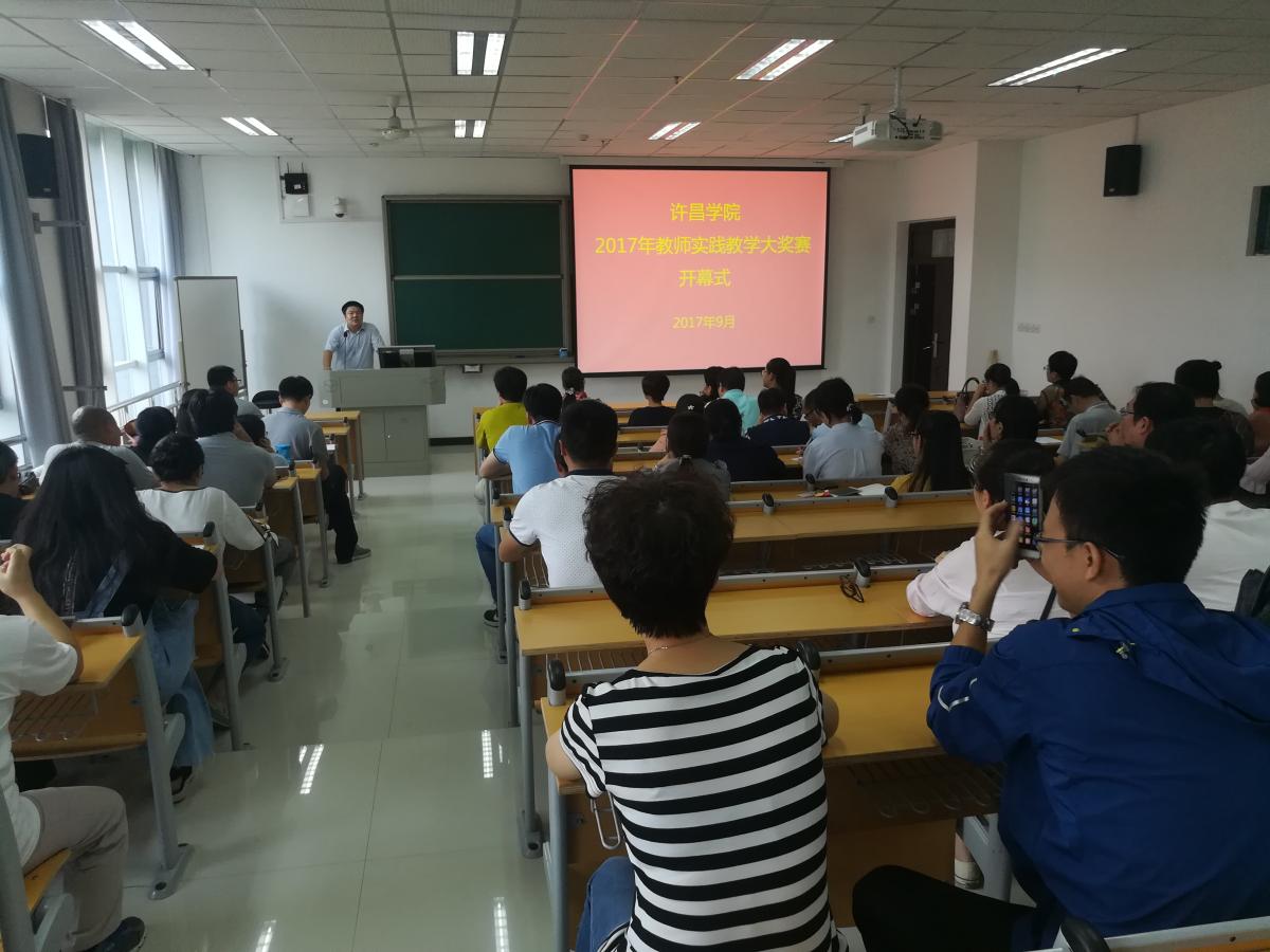 9月20日下午,我校在新文科综合楼E-404多媒体教室组织举行了2017年教师实践教学大奖赛开幕会。来自全校各教学单位的主管教学工作负责人、全体参赛教师和相关赛务工作人员参加了开幕会。