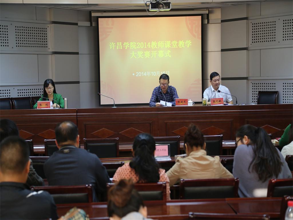 10月15日下午,备受广大师生期待和关注的2014年教师课堂教学大奖赛在我校办公楼第三会议室隆重开幕。副院长张建军出席开幕式,各院部主管教学的负责人、参赛教师及领队等相关人员参加了开幕式。开幕式由教务处处长张元敏主持。