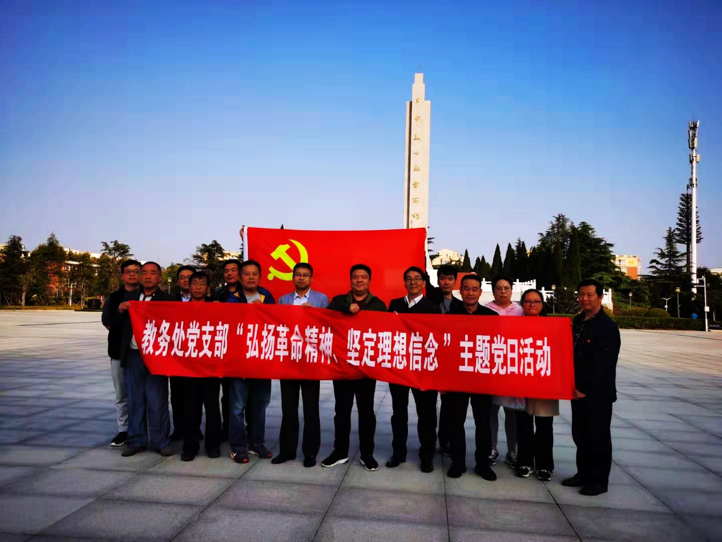 为追寻先辈足迹,汲取奋进力量,根据学校开展“不忘初心、牢记使命”主题教育统一安排部署,10月18日,教务处党支部组织全体党员来到许昌市烈士陵园开展“弘扬革命精神,坚定理想信念”主题党日活动,以学习革命精神,坚定理想信念。