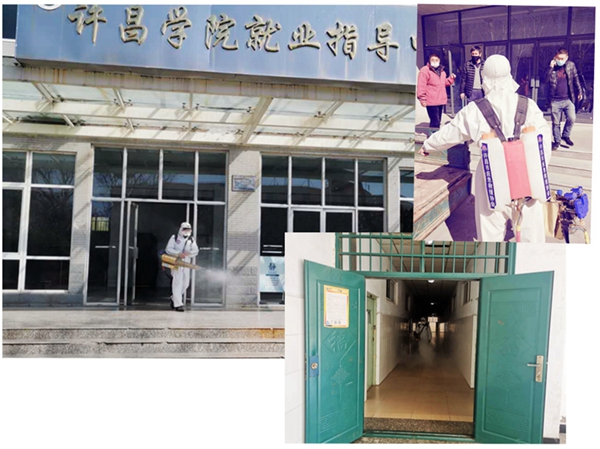 3月15日,为确保教室等场地安全,邀请许昌市应急救援协会安排专业消杀。消杀范围覆盖教学楼和所有教室等,并对楼道、楼梯扶手、卫生间等重点区域实施密集反复消毒,通过地毯式消杀,不留死角。并安排管理员开始轮流值守,对操场及教学楼主要楼道进行常态卫生打扫,保持环境卫生。