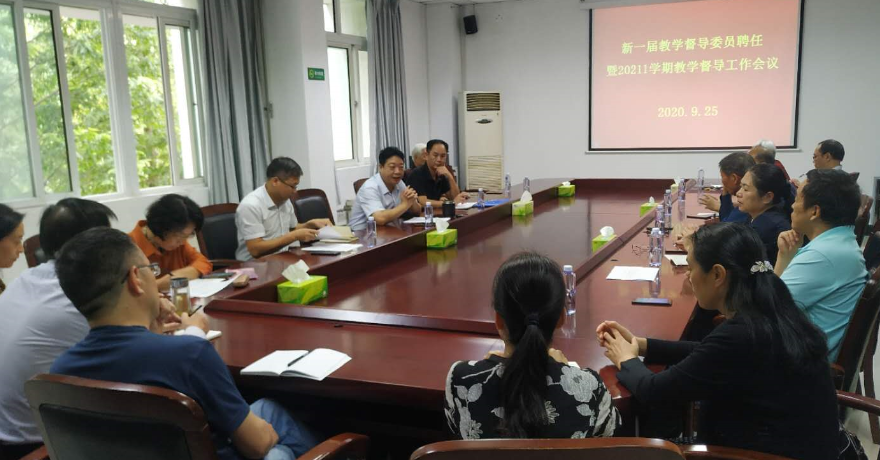 2020年9月25日,教务处(教学质量监控与评估中心)在办公楼第一会议室召开了新一届教学督导委员聘任及20211学期教学督导委员会工作会议。教务处(教学质量监控与评估中心)高远浩处长、闫慧副处长、王振亚副主任、全体教学督导委员会委员及相关工作人员参加了会议。