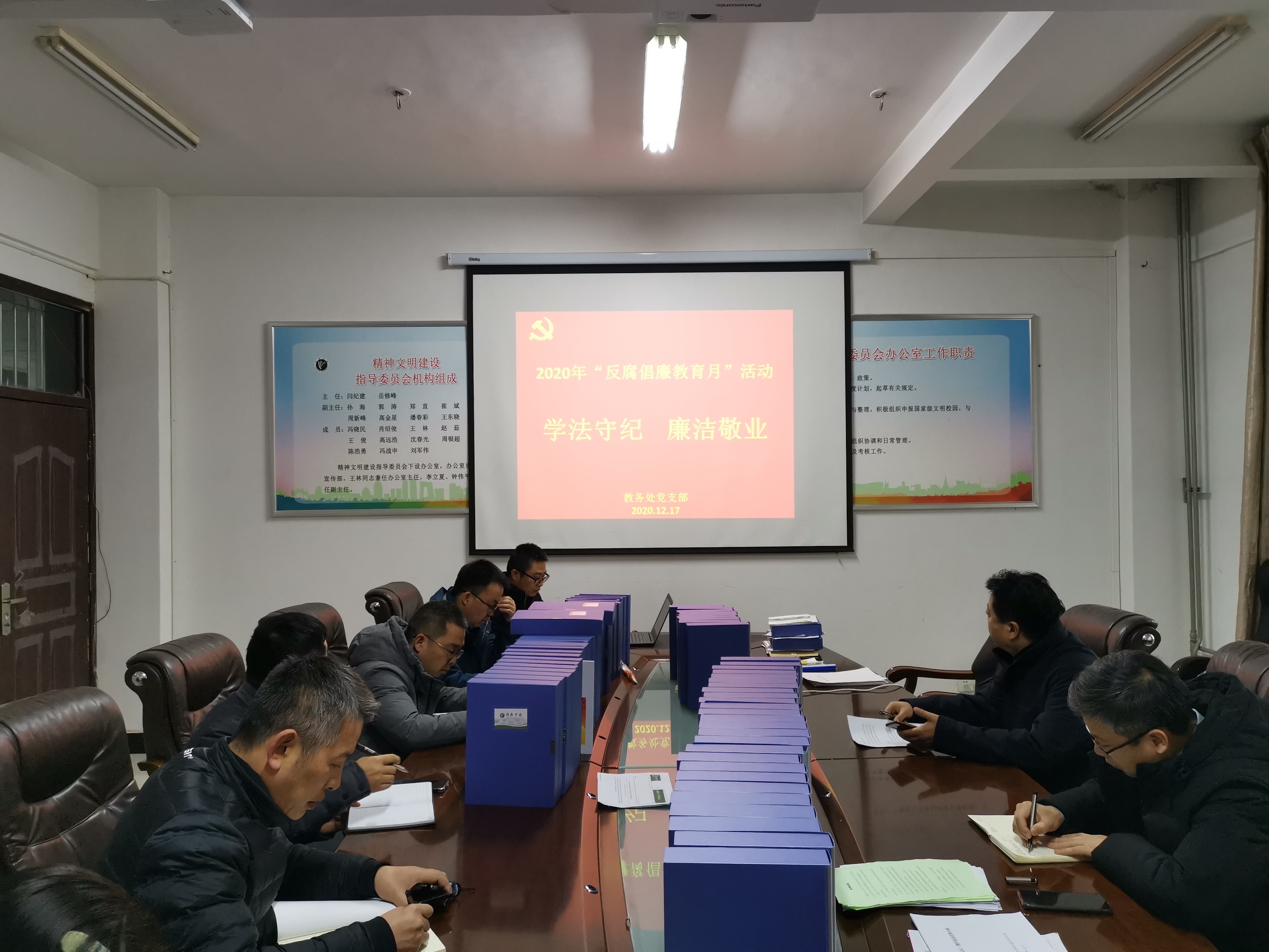 根据中共许昌学院纪律检查委员会工作部署安排,11月至12月在全校开展2020年“防腐倡廉教育月”活动。教务处党支部于2020年12月17日上午在第二会议室召开“学法守纪·廉洁敬业”为主题的教育活动。本次活动由教务处党支部书记高远浩处长主持,教务处全体党员和科级干部参加。