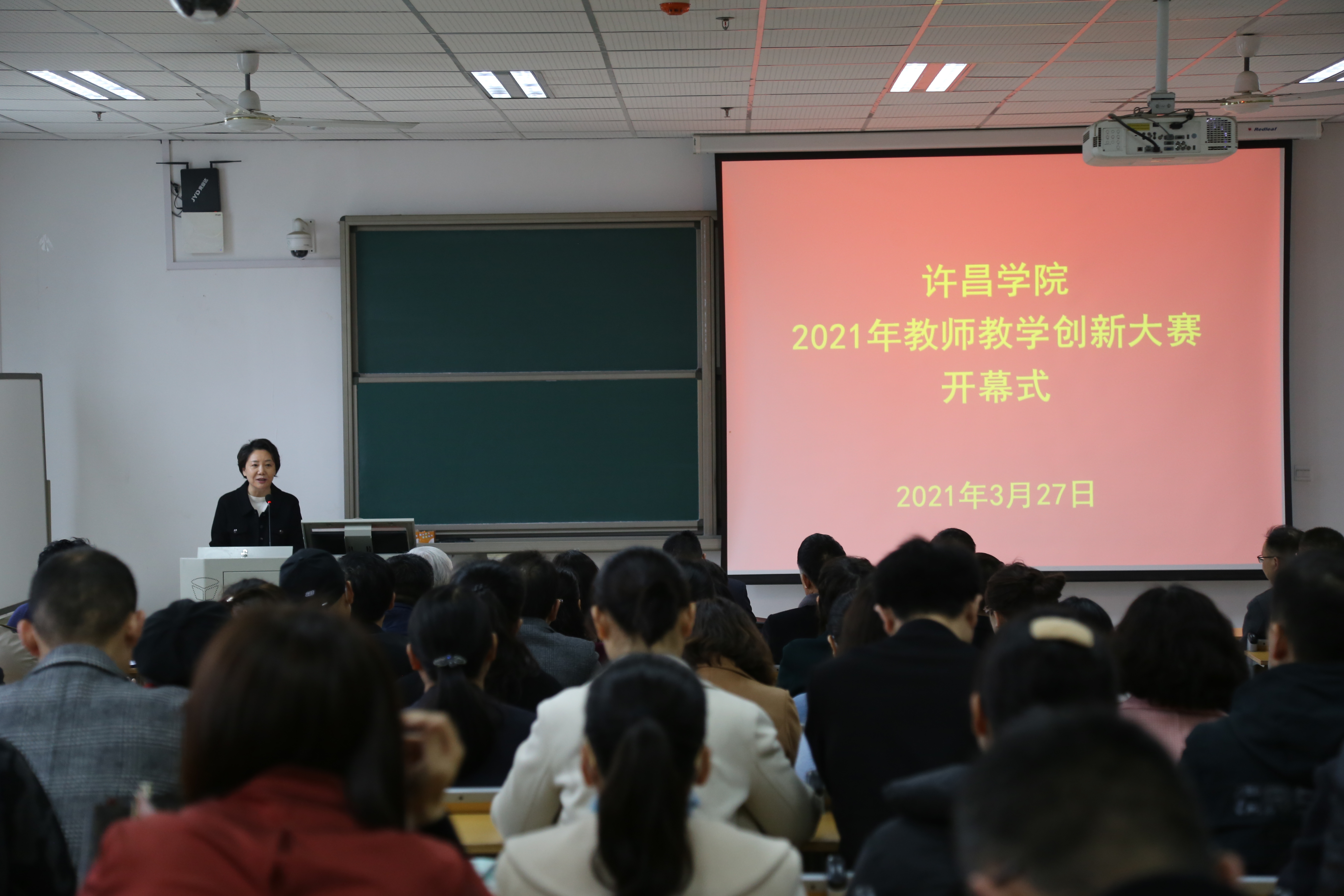 我校2021年教师教学创新大赛圆满结束。大赛自1月启动,历时近3个月,分为院级初赛和校级决赛两个阶段进行。中央教育工作领导小组秘书组秘书局副局长王猛,中共河南省委教育工作领导小组秘书组秘书处处长宋辉,许昌学院院长岳修峰、副院长郑直到决赛现场查看了比赛情况,副院长黄怡俐出席了开幕式并讲话。来自全校18个二级学院的89名教师参加了决赛,决赛全程实现了网络直播。
