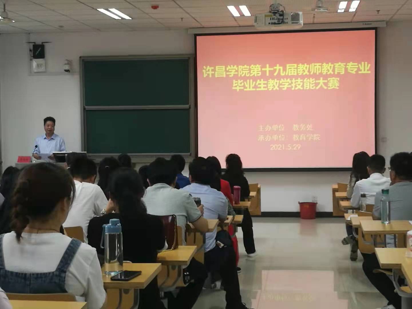为全面贯彻国家和省教育大会精神,有效落实立德树人根本任务,促进教师教育专业人才培养质量的逐步提升,5月29日,我校在文科综合楼举行了第十九届教师教育专业毕业生教学技能大赛。本次大赛由教务处主办、教育学院承办;大赛分院级初赛和校级决赛两个阶段,比赛内容包括说课、答辩和才艺展示三个环节。经各学院的层层选拔和初赛,来自全校12个教师教育专业的82名选手参加了校级决赛。