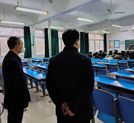 2022-2023学年第二学期开学第一天,杜根远副院长带领教务处(教学质量监控与评估中心)领导班子和相关科室人员深入教学一线,对教学运行工作进行全面检查和指导。