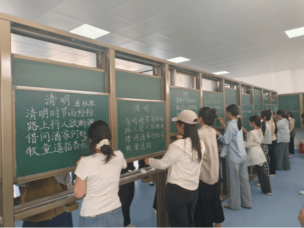 为提升我校师范生粉笔字书写技能,夯实“三字一话”教学基本功,营造浓厚的校园文化氛围,弘扬中华优秀传统文化,2025年5月23日下午,由教务处(教学质量监控与评估中心)、校团委主办,文史与传媒学院、教育学院承办的“粉染讲台 笔绽风华”师范生粉笔字技能大赛决赛在蕴韬楼A3-501实训室举行。大赛吸引了全校9个院系14个师范专业的师范生积极参与,经过二级学院初赛、全校复赛的层层选拔,共有46名同学脱颖而出,进入全校现场决赛环节。