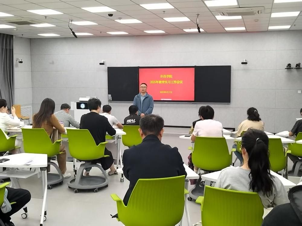 会上,下发了许昌市教育局《关于做好许昌学院2025年师范类专业教育实习工作的通知》、教务处《关于做好2025年教育实习工作的通知》、《教育实习带队教师工作手册》、《实习生分配名单》等材料。(图片由实践教学科 提供)