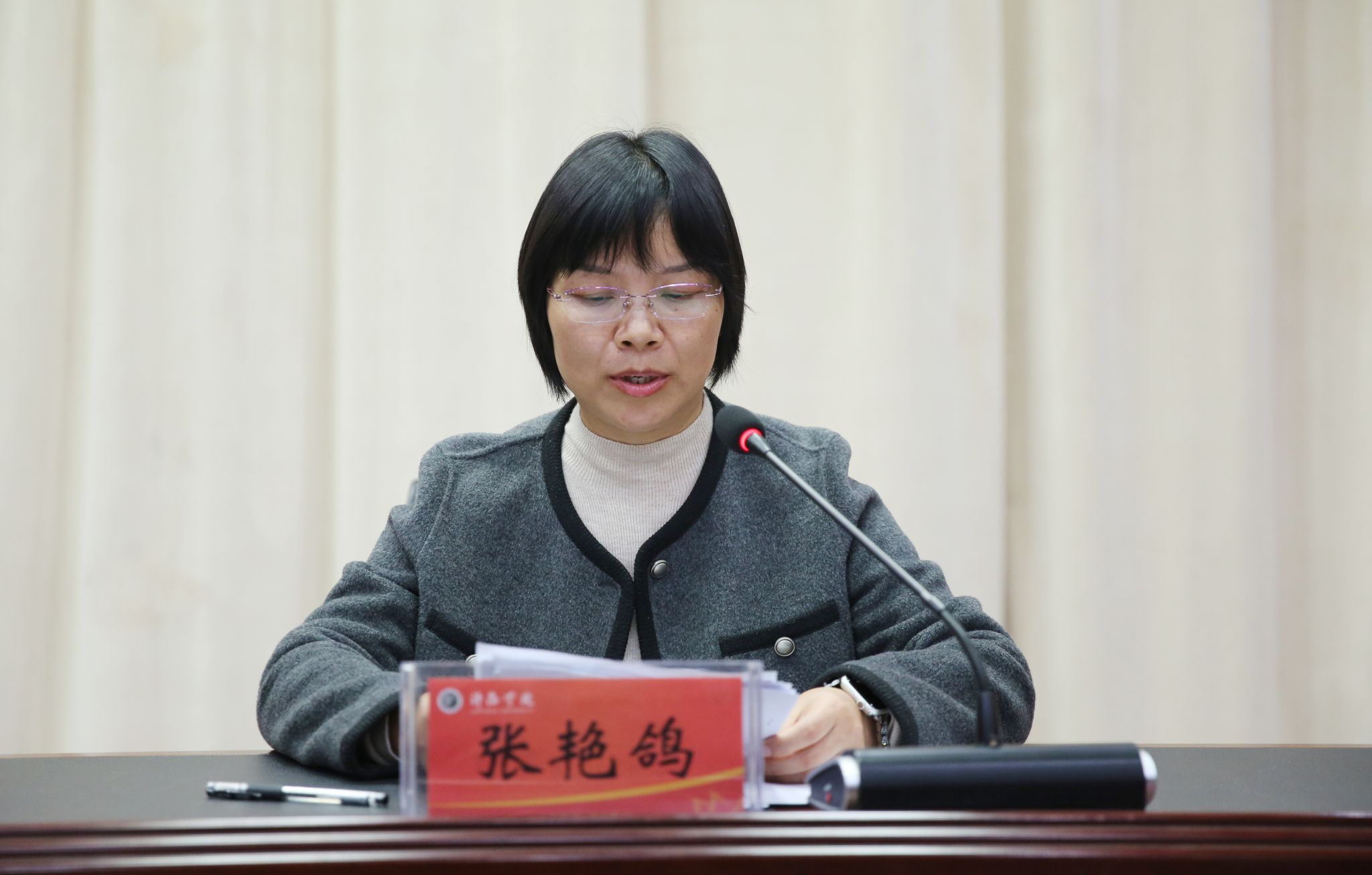 会上,教务处处长张艳鸽宣读了《关于聘任校级教学督导委员的决定》,并对新一届校级教学督导和二级学院教学督导人员构成情况进行了详细说明。质评中心副主任兼教务处副处长郭卫芸就2025-2026学年教学督导工作做了详细部署和安排。新聘任校级教学督导委员韩培林副教授代表新一届教学督导委员谈了工作体会并做了表态发言,为学校有关教学督导相关政策及全体督导委员的工作提出了中肯建议。