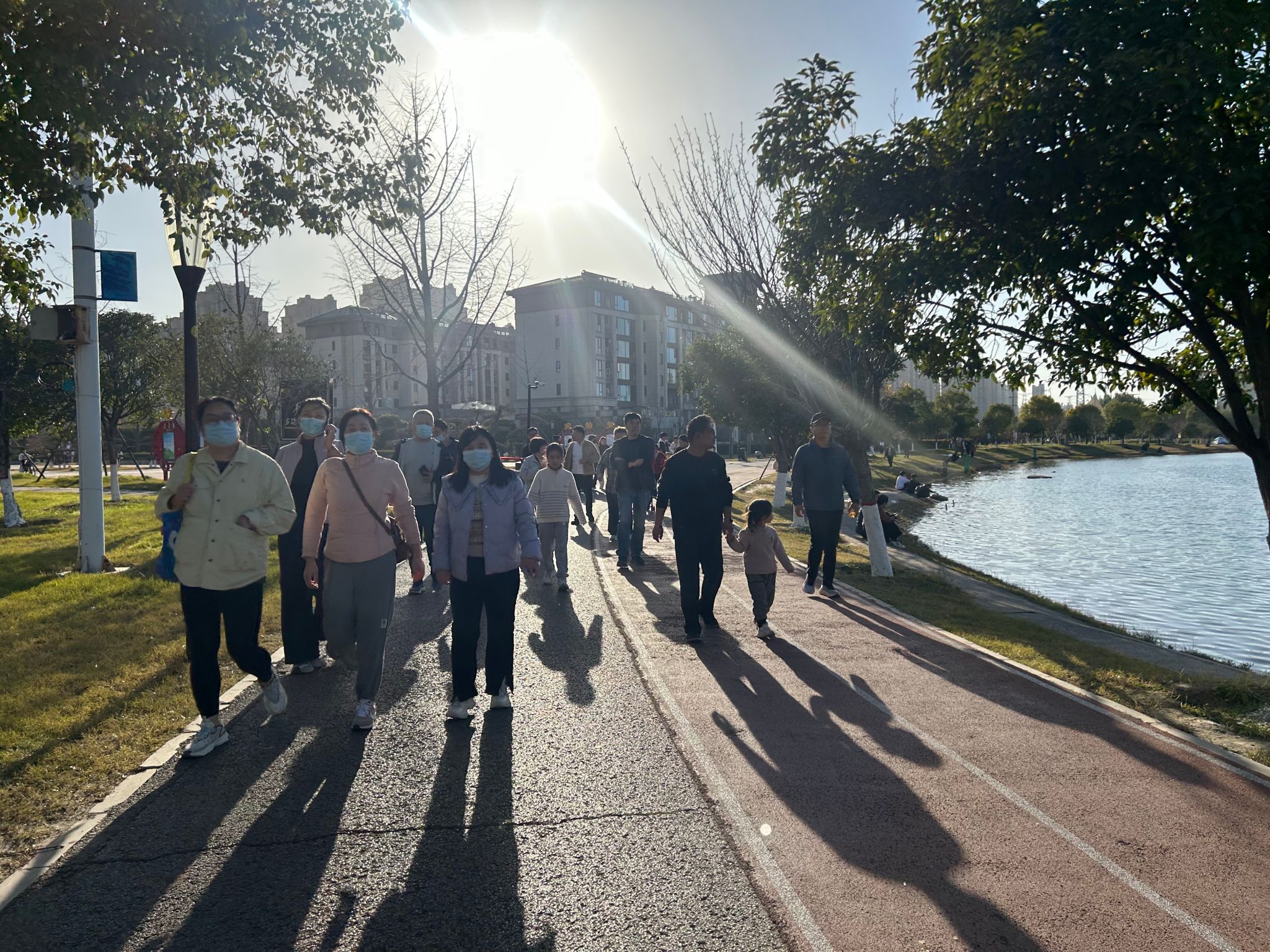 活动伊始,教职工们在指定地点有序集结,工作人员详细说明活动路线、参与规则及安全注意事项后,大家沿步道整装出发,环绕鹿鸣湖开启健步之旅。冬日暖阳洒满湖畔,微风拂过,教职工们并肩前行、步履轻快,沿途时而畅谈工作与生活,时而驻足欣赏湖光景致,欢声笑语回荡在湖畔,充分享受运动带来的放松与愉悦。