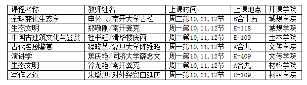 4.以下课程已通过遴选确定上课名单,选课名单已按照任课教师报送结果导入教学班级,学生无需再次选修该课程,也不得改选该时间段其他课程。