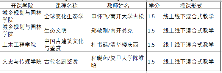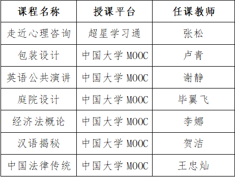 (4)以下网络课程配备校内助学教师,采用线上线下结合形式授课,选修以下课程第五周第一次上课须去教室听线下教师讲授,授课过程中服从校内助学老师安排,考试成绩分线上、线下部分,无故缺课者无法获得学分。