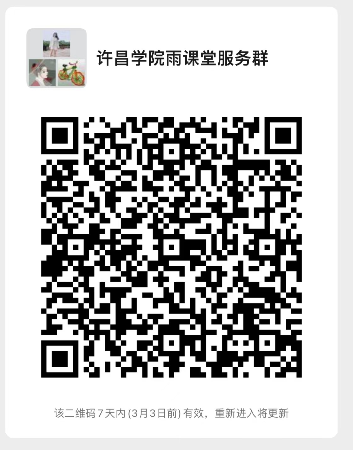 3.微信扫描下方图2,加入许昌学院雨课堂微信服务群,方便答疑沟通。