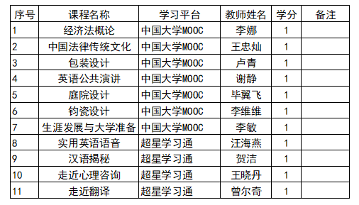 2.为促进我校自建网络课程建设,非2022届毕业生在毕业前须选修一门自建课程,课程名单如下: