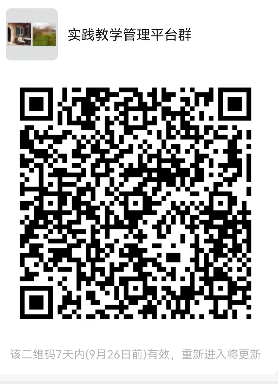 2.各学院要指定实习工作负责人,扫文件下方二维码进“实践教学管理平台群”。按要求填写《院(系)专业信息导入模板》(见附件3)、《教师信息导入模板》(仅填写实习工作负责人信息)(见附件4)、《2022-2023-1学期非师范专业实习情况统计表》(见附件5)、《许昌学院2023届教师教育专业毕业生教育实习分配表》(见附件6),并将上述表格以院名称建文件夹,于9月27日前发送至实践教学科赵老师QQ邮箱。