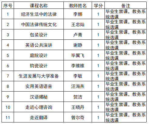 1.不得重复选修已取得学分课程,否则无法再次获得学分。选课期间,可改可退,选课结束,无法更换。未在规定时间内选课视为放弃。