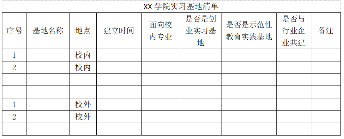 实习基地是学生专业实践锻炼的重要场所,对培养学生的实践、创新、就业和创业能力具有重要的作用。为整理完善实习基地相关材料,迎接审核评估,现要求如下:
