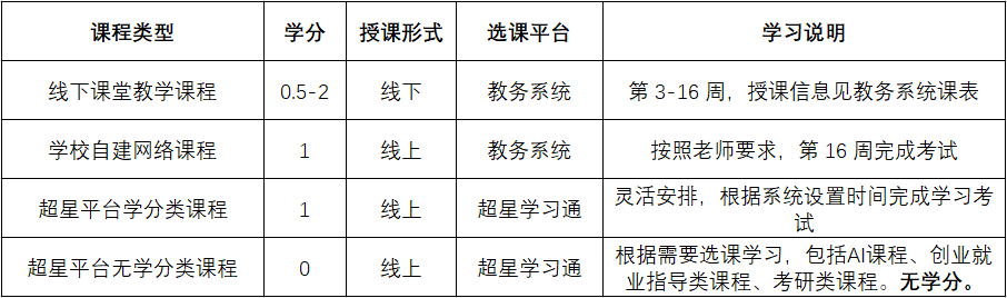 4.特别强调:毕业生不得选修线下课程及学校自建网课,仅能选修超星平台网课。超星平台网课上课及考试在2026年5月1日前完成。